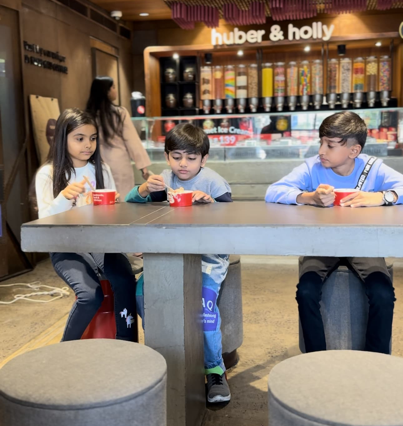 In November 2023 (7 years and 6 months old), I have done Huber & Holly Ice Cream located at Pakwan Char Rasta Ahmedabad. In that I have participated as child artist with other kids with similar age group. I have enjoyed a lot in this ice cream hotel shoot.